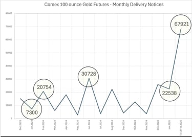 I øjeblikket ser vi en eksplosion i fysisk guldlevering, og det kan være tegn på, at Comex er ved at løbe tør for guld.