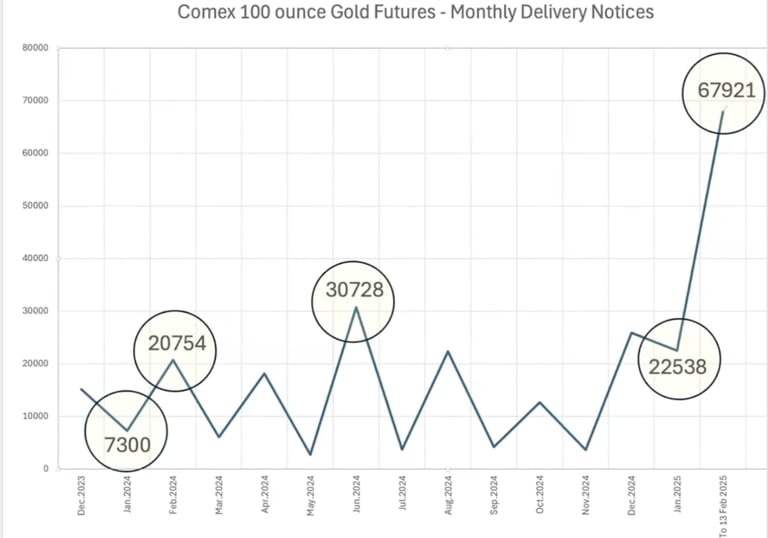 Hver kontrakt repræsenterer 3,1 kg guld, hvilket svarer til 211,2 tons guld drænet fra Comex på blot 13 dage!